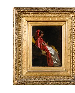 Roberto Venturi (1846-1883) - Donna seduta in poltrona con mantello rosso