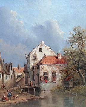 Free shippingToegeschreven aan Johannes Josephus Van Mulken (1796-1879), Attributed to - Romantisch landschap met boerderijen, herders en vee.