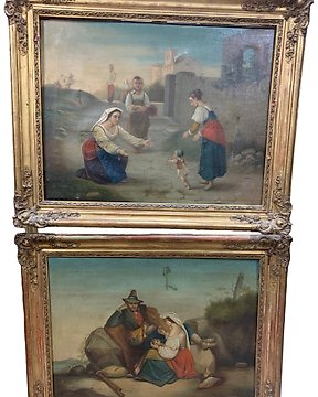 Luigi Tagliani (XIX), scuola di - Coppia di scene di campagna con personaggi