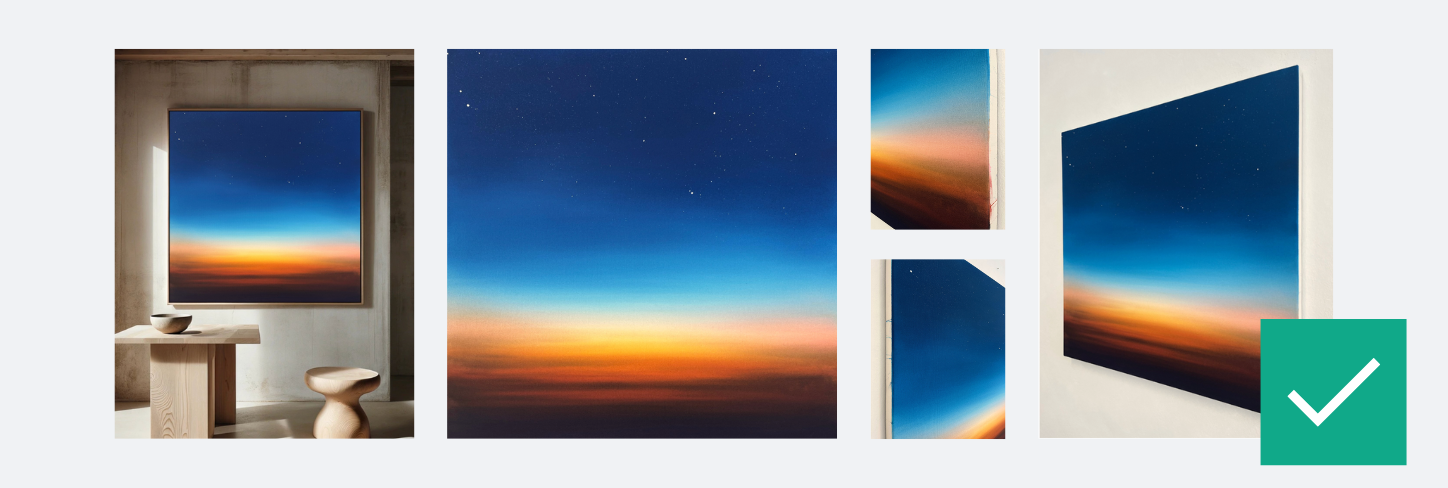 Good photos show the artwork from multiple angles in clear lighting, highlighting texture, quality, and details — including the back if signed.
