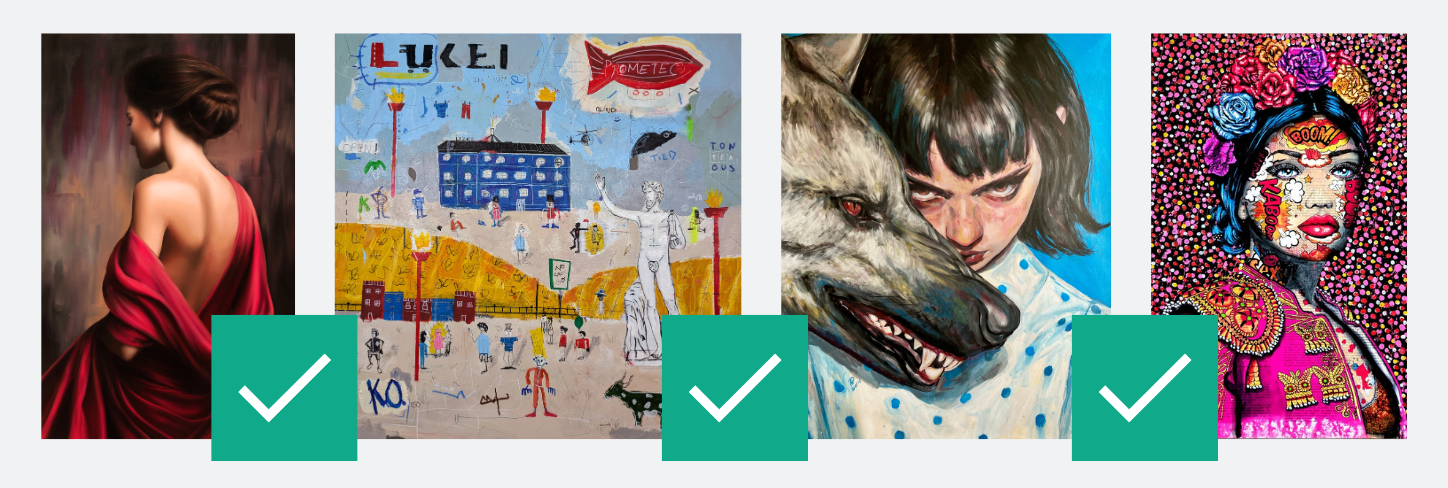 We carefully select submissions to maintain high-quality and authenticity standards. We only accept authentic contemporary artworks, directly from the artists, valued at €150 or more. Our experts review every submission to ensure bidders find unique, original works directly from the artist.