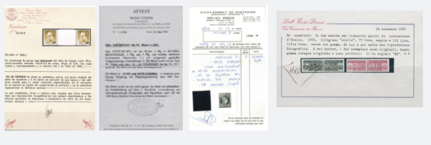 Stamps with third-party certification (especially for repaired or rare stamps)