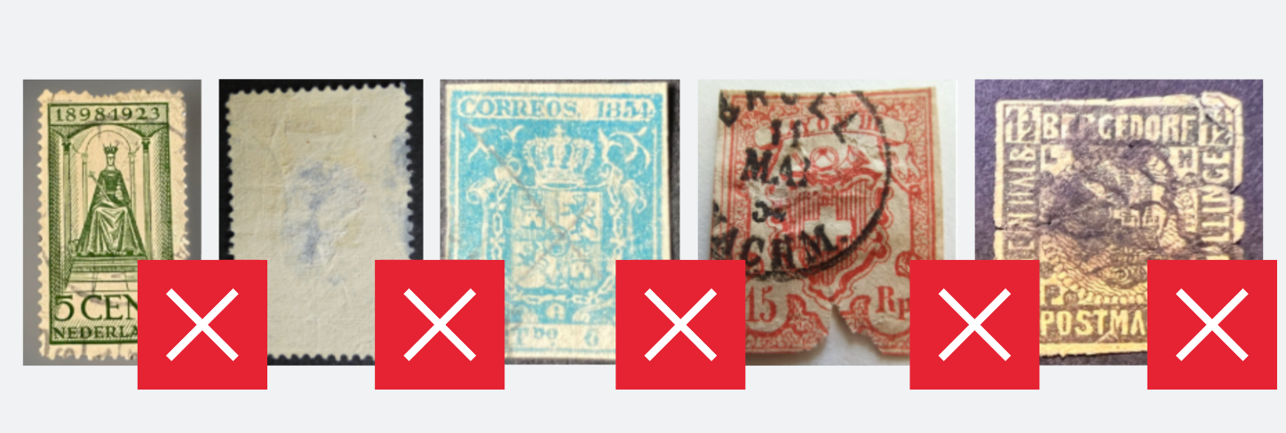 Modern reproductions or stamps with significant defects (unless very rare and certified)