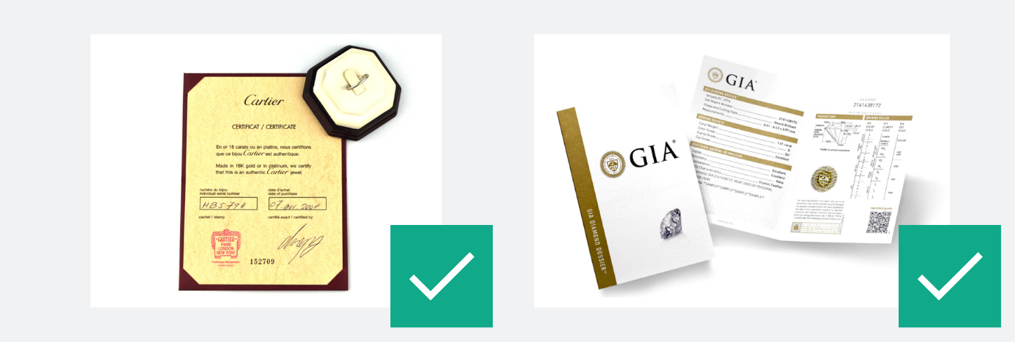 - Jewellery accompanied by a laboratory report, as this significantly increases buyer trust and the likelihood of a successful sale.