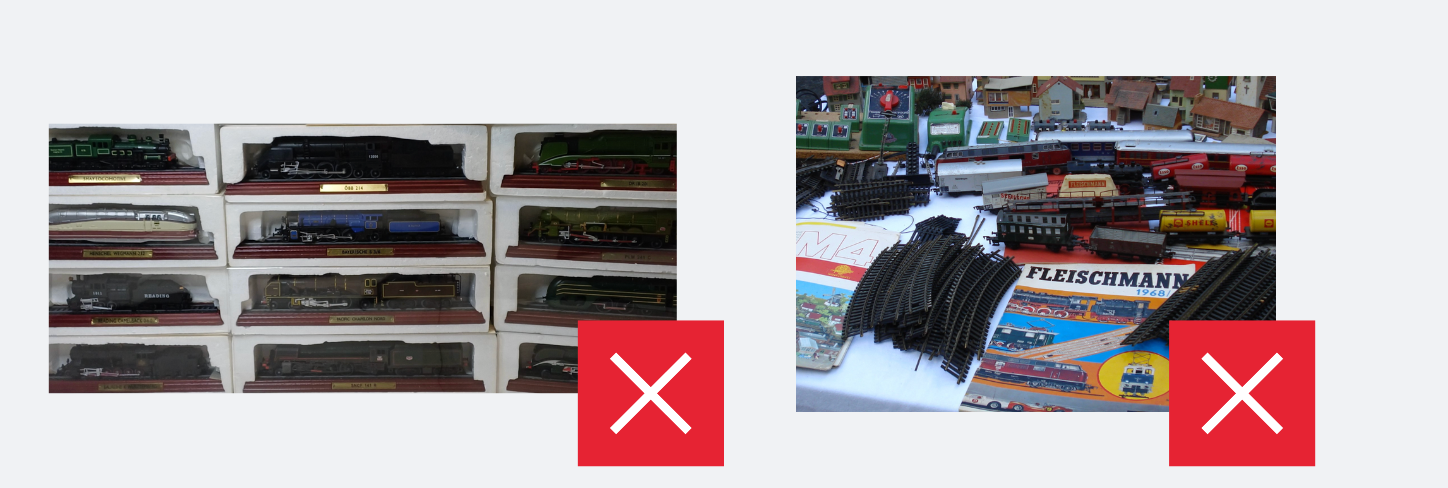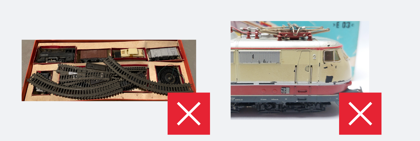 - Objects not suitable for collectors due to poor quality or presentation (e.g. scenery or accessories of Chinese origin such as Temu or AliExpress)