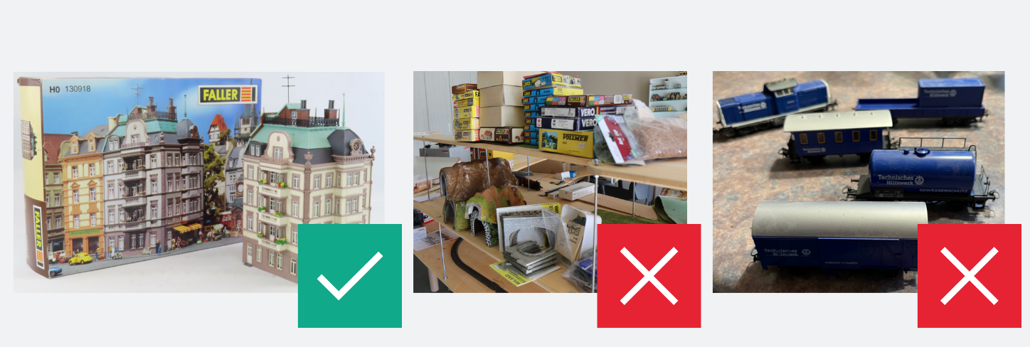 When you submit an object, you’ll see fields to guide you in providing the right information, such as: type of object, number of items per article number, condition, brand and scale, ,article number, quantity, railway company, series and running number, etc. These fields ensure your listing is clear, searchable, and easy for bidders to understand. A clear and true object description also increases bidders confidence and avoids post sale litigation.