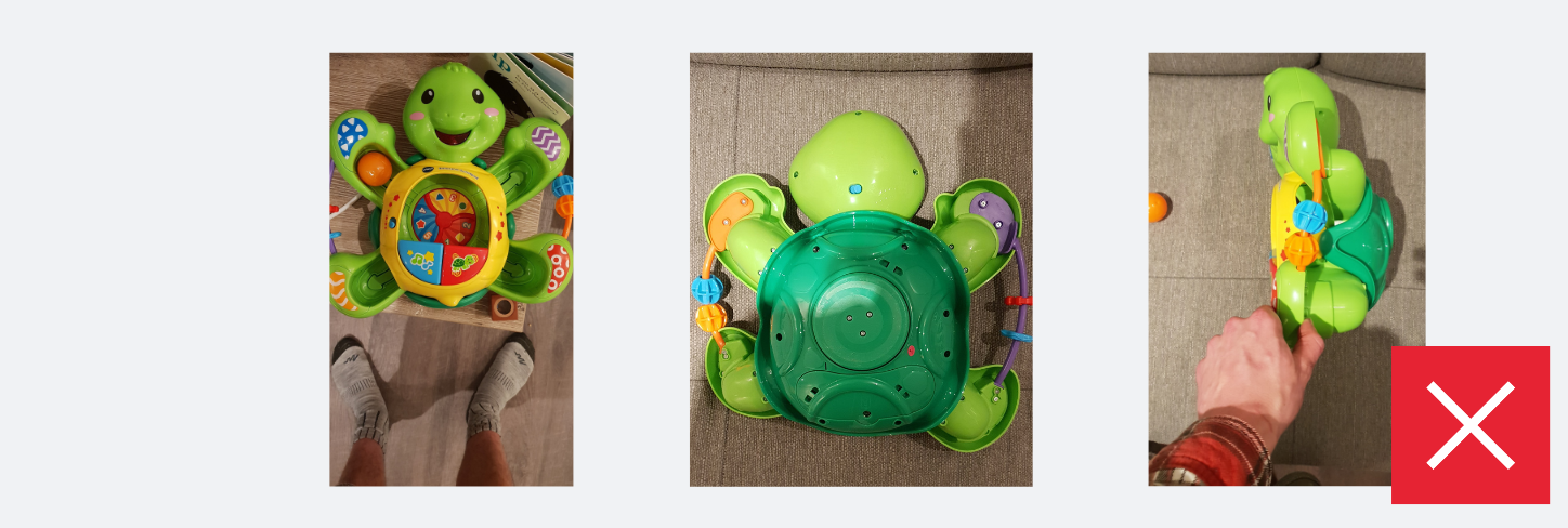 - Avoid holding the object in photos — it obstructs key details, adds shadows, and looks unprofessional. Always place the object on a clean, neutral surface to capture it properly.