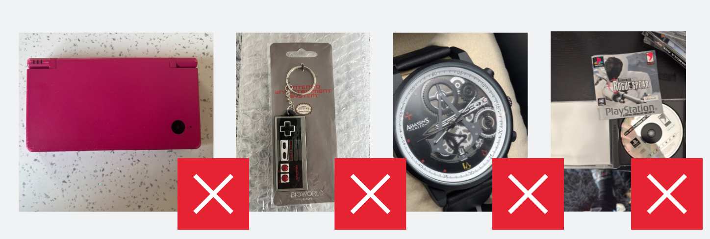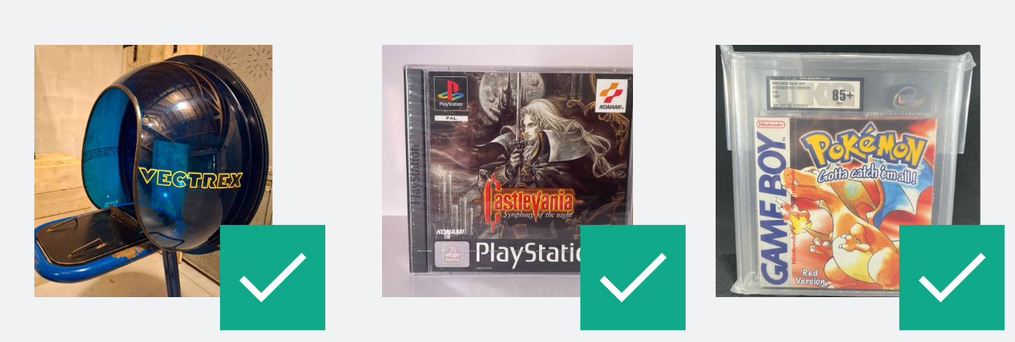 - Be of collectable value, complete (e.g. boxed games, consoles with cables and controller) and in working condition