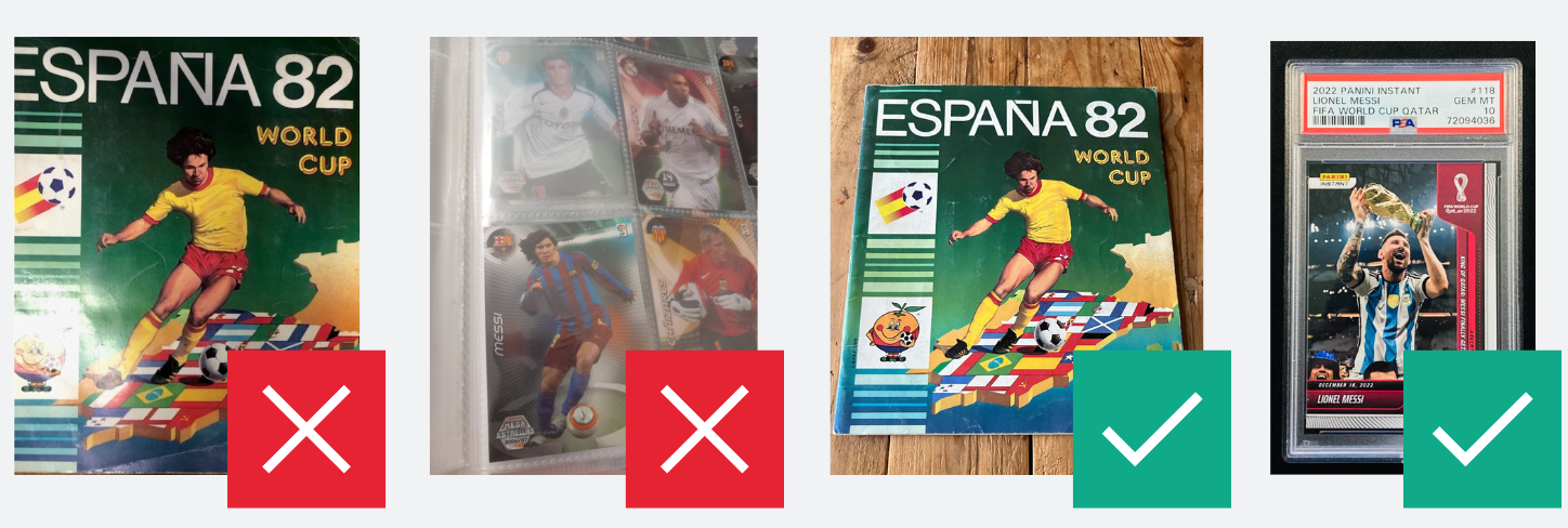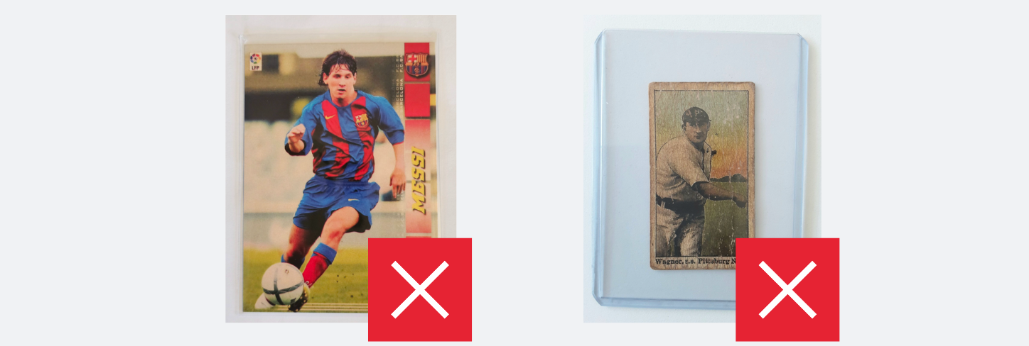 - Single stickers or cards graded by recognized grading companies (the complete list can be found in the drop down menu of our submission flow)