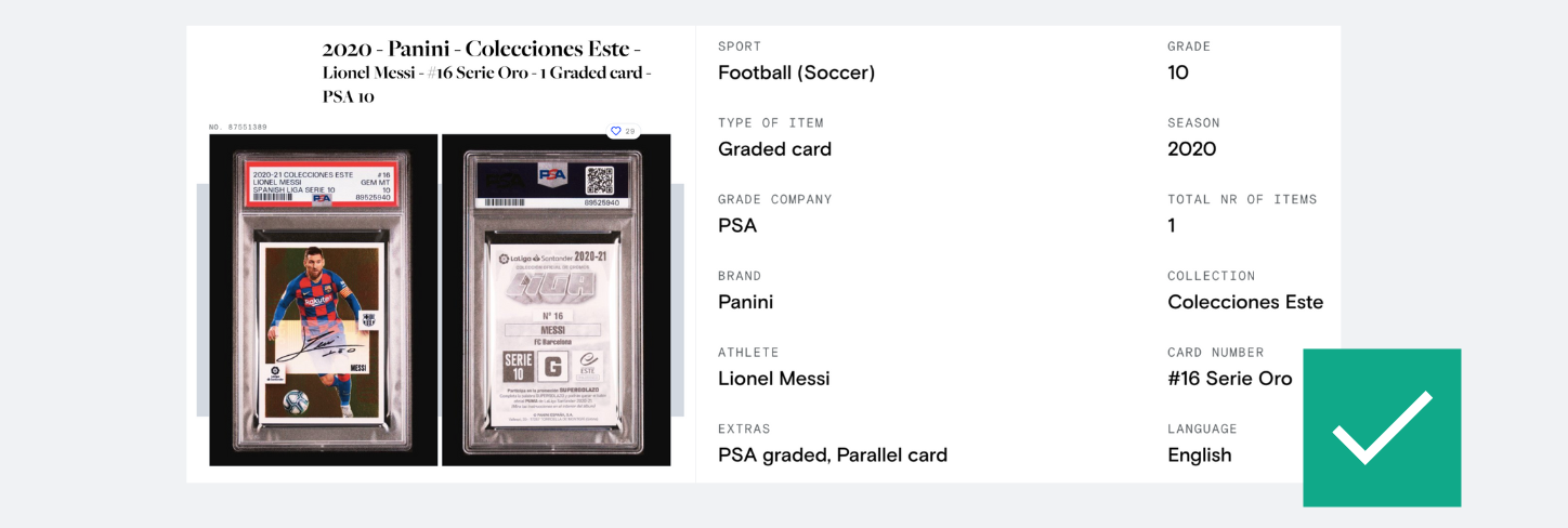 We carefully select Panini & Sports Cards to maintain high-quality and authenticity standards. We only accept authentic collectables valued at €50 or more. Our experts review every submission to make sure bidders find special, rare and valuable objects.