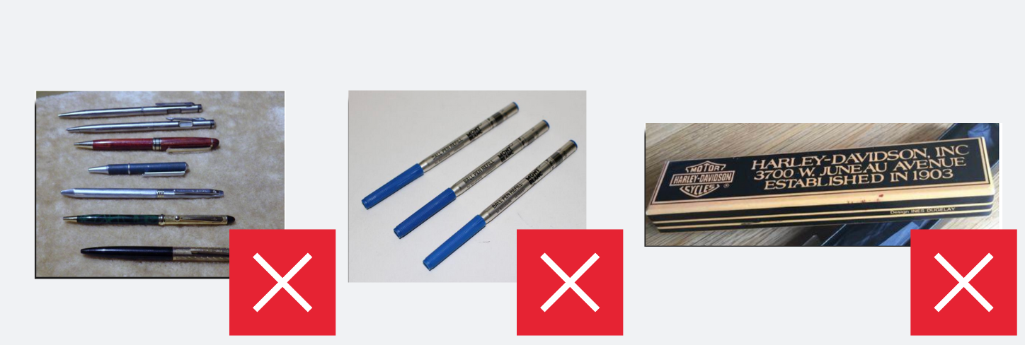 - Pens in poor condition (broken mechanism, damaged nib, cracked housing)