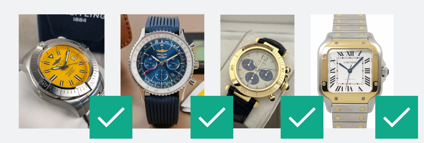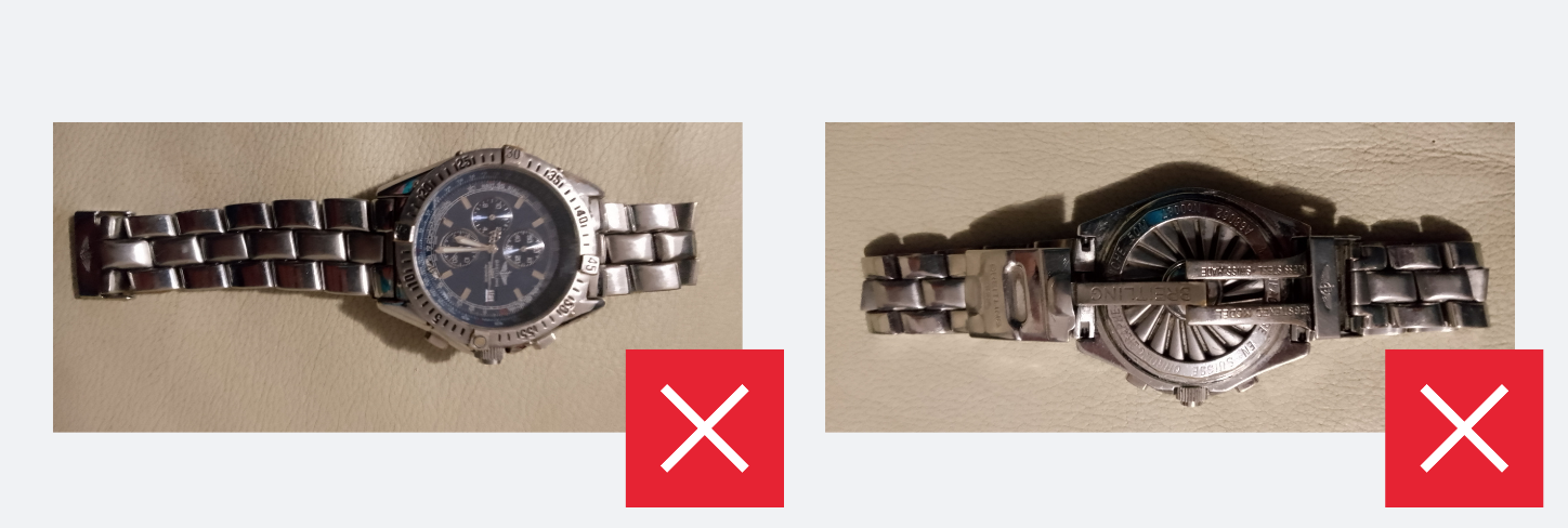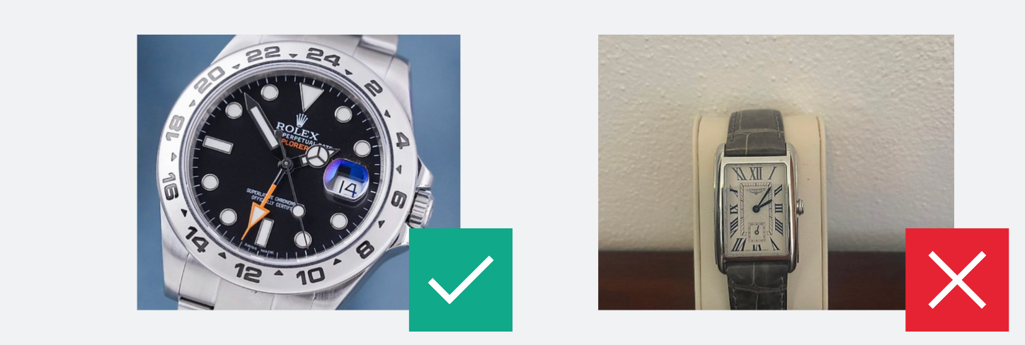 Tip: Clean the watch before photographing. Avoid photos with people, selfies, or screenshots. Use a neutral background (white or black), avoid low-quality or stock images, and aim for natural lighting. Find here more tips on how to take professional photos.