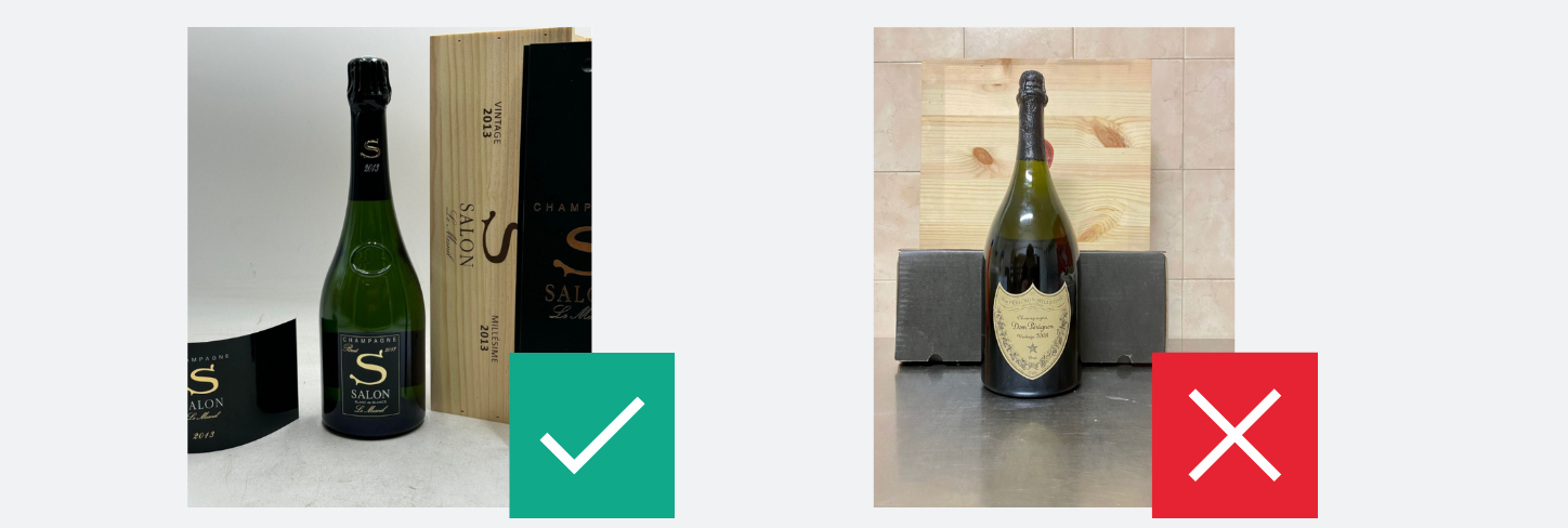 - Bottles with a fill level ≥ 4 cm from the bottom (unless rare/vintage bottle like Dom Pérignon)