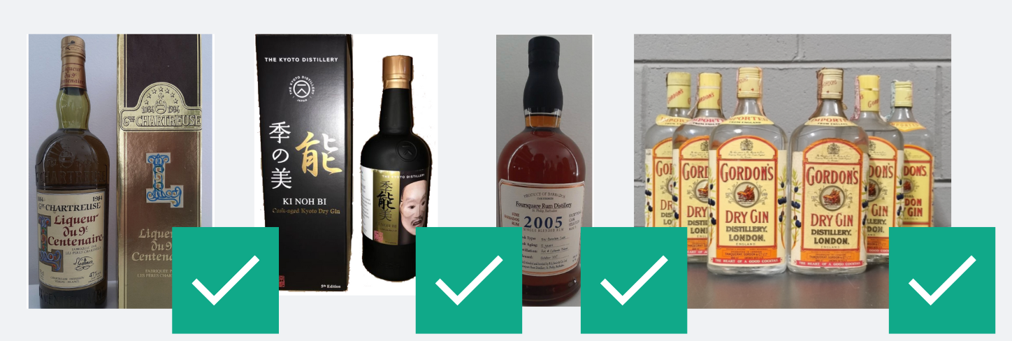 - Incoherent grouped submissions that include several bottles with different brands (for Fine Spirits & Liqueurs only).