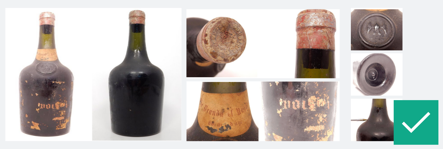 We pay extra attention to ensure authenticity of objects to protect bidders and ensure a trustworthy marketplace. While most bottles are self-evident, high-value or rare bottles may require: