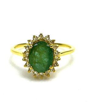 No reserve price - Ring - 18 kt. Yellow gold - 4.03ct. tw. Emerald - Diamond - Emerald Diamond RingCurrent bid€195
