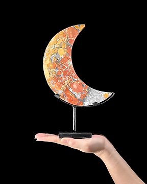 NO RESERVE PRICE - Wonderful rough Red Maligano Jasper Crescent Moon-Shaped on a custom stand - Height: 28.7 cm - Width: 18 cm- 1700 g - (1)Starting bid€1