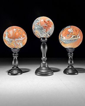 NO RESERVE PRICE - Wonderful set of 3 Red Maligano Jasper- Spheres on custom stands- 2000 g - (3)Current bid€1
