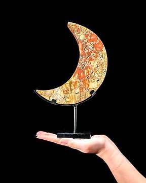 NO RESERVE PRICE - Wonderful Yellow Maligano Jasper Crescent Moon-shaped on a custom stand - Height: 28.5 cm - Width: 15.5 cm- 1700 g - (1)Current bid€2