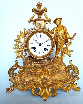 Antique 19thc Victorian French Brunfaut Figural gilded Mantel Clock - Metal - 1850-1900 - PenduleCurrent bid€87