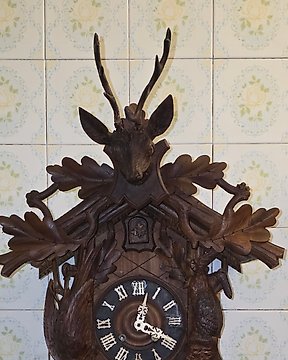Automaton clock - ODO - wood, metal, brass, decorated glass - 1950-1960