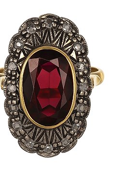 No Reserve Price - Ring - 14 kt. Yellow gold Garnet - Diamond