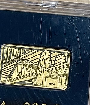 Solomon Islands. 10 Dollars 2024 Gold-bar 1/200 Oz Au999.9 SYDNEY Harbour Bridge (No reserve price)Current bid€2