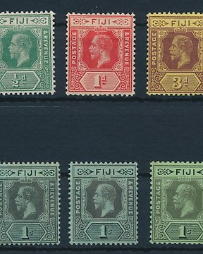 Fiji 1914 - King George, 1/2 P - 1 Shilling, game on stock card - Stanley Gibbons ex No. 125-134