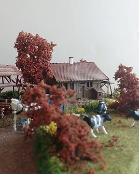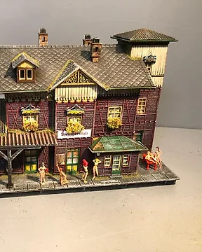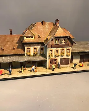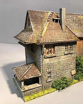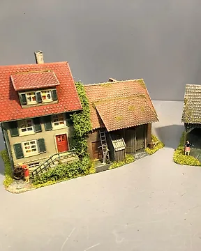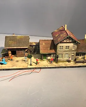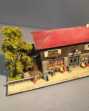 Faller, Heki, Preiser H0 - Model train scenery (28) - Pension with bierterras and many details, hand-painted and patinated.