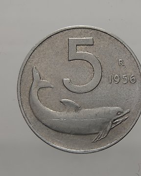 Italy, Republic 5 Lire 1956 "Delfino" (No reserve price)