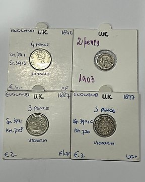 United Kingdom. George V, VI. Half Crown, Six Pence 1925/1928/1939/1942 Silver 4 coins (沒有保留價)