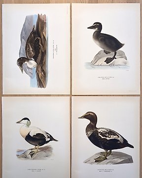 Von Wright brothers & Bror Halberg - 4 lithographic plates with common eider - 1917-1929
