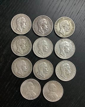 Germany, Prussia Wilhelm II. 5 Mark 15x 1891/1914, incl. Uniformed bust (No reserve price)