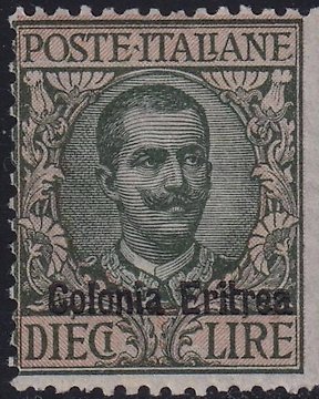 Italian Eritrea 1916 - Floreale 10 l. olive and pink Sass 40 intact MNH** Cert.Raybaudi rare
