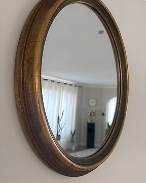 Mirror- Elegant antique mirror with relief and a storage compartment. - Brass, Glass, Wood