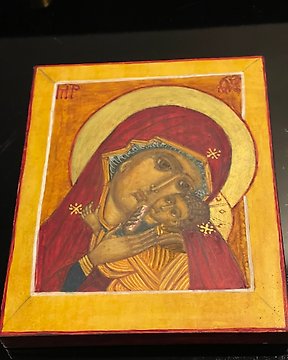 Icon - Mother of God of Vladimir - Wood - Hand painted - 17 x 25 cm