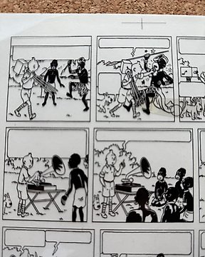 Hergé - Tintin au Congo - Page complète film A4 cello/plastic du trait encre de Chine