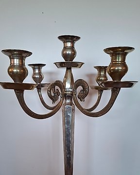 Candlestick Decorated with a border. (2) - Silverplated, Chrome plated - 1x3 arm / 1x2 arm
