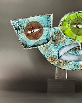 Ewa Budzowska - Sculpture, The bird- big- (with 24carat gold) - 23 cm - 24kt gold - 2025