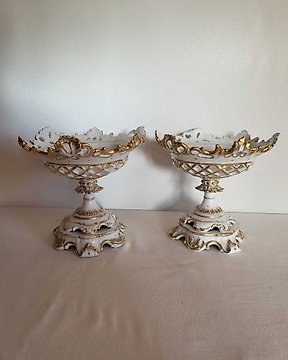 Fruit basket (2) - Porcelain - Pair of cut-out cups on a pedestal – (Saxony / Thuringia)