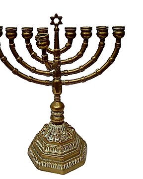 Menorah - Cast brass - 'Jerusalem' on a base - 24 cm