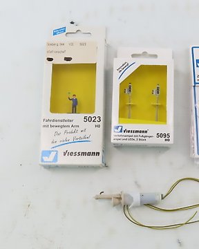 Viessmann H0 - 1315/1397/5023/5095 - Model train scenery (4) - Traffic controller with movable arm, decorative fountain, LED course/platform sign, and two traffic