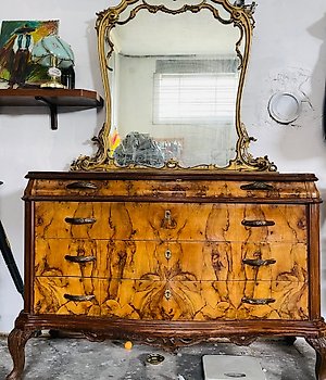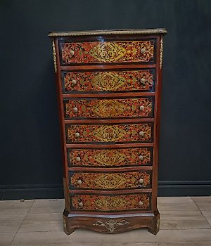 Commode - Wood, Bronze, Marble - Boulle-style dresser with bronze and wood details and inlays.