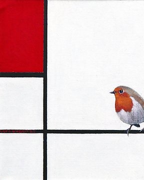 Jos Verheugen - Free after Mondrian, with Swallow (A187, mixed techniques on paper under glass)