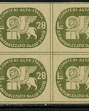 Ocupación austriaca de Friuli 1918 - Serie de periódicos de 4 valores con sobreimpresiones al revés. Variedad certificada rara