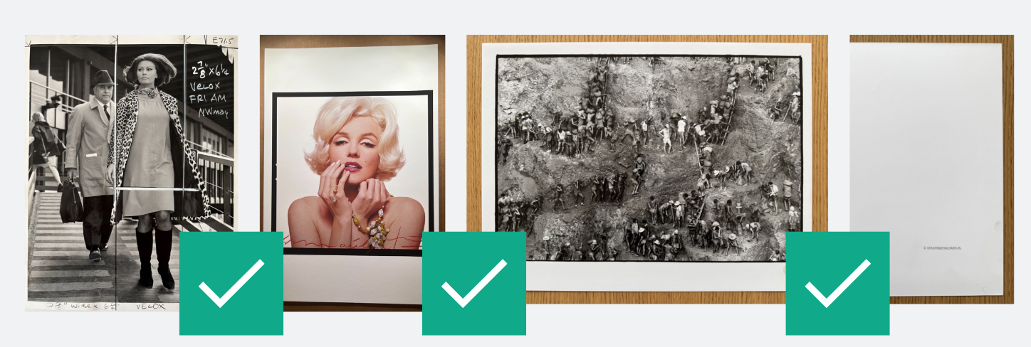 Buscamos obras fotográficas auténticas y de alta calidad que atraigan a coleccionistas serios. Para ser aceptado, tu objeto debe: