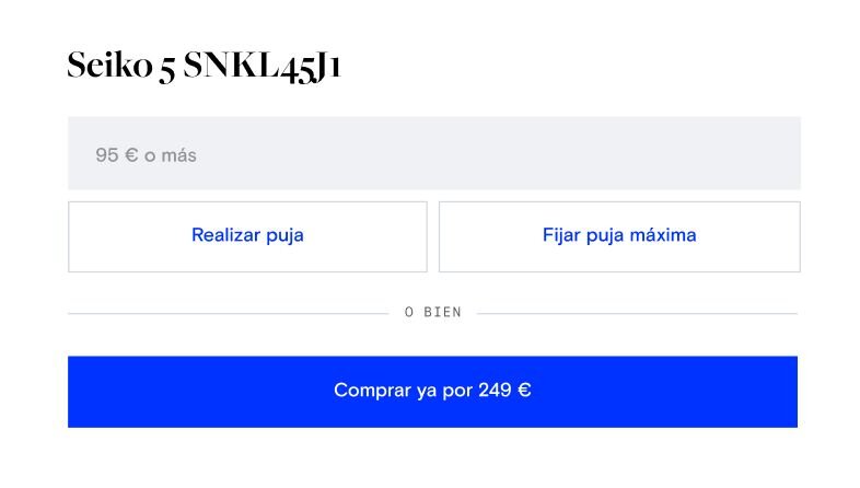 Selecciona el botón “Comprar ya” entre las opciones de puja para comprar el objeto de inmediato. Tienes que darte prisa, pues la opción desaparece 24 horas antes del fin de la subasta.
