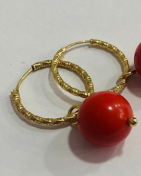Sin precio de reserva - Pendientes largos Bañado en oro, Plata, Corallo Sardegna Coral - Pendiente Art déco