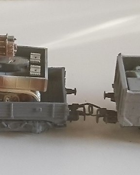 Roco, Märklin H0 - Vagón de tren de mercancías a escala (2) - Construcción militar H0: 1 vagón Hochbord + 1 vagón Niederbord - DR (DRB)