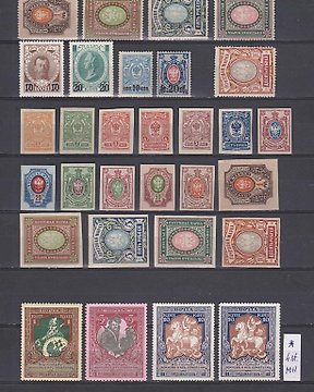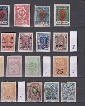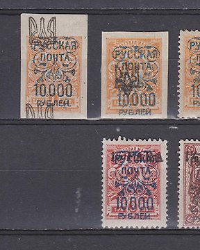 Federación Rusa 1918/1920 - Guerra Civil Rusa: Ucrania - Colección excelente de sellos con sobreimpresión azul, Kyiv, Tipo 2 - Kramarenko